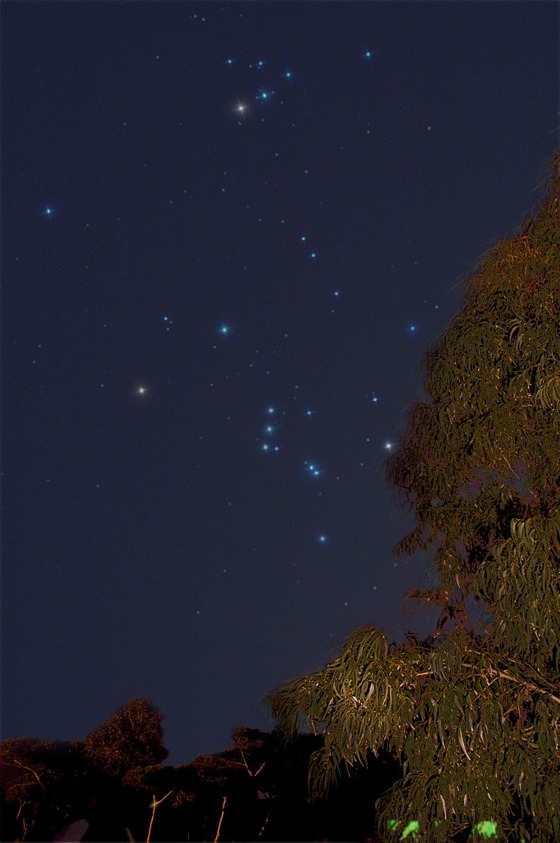 Orión, (el Cazador), es una constelación prominente, quizás la más conocida del cielo. Sus estrellas brillantes y visibles desde ambos hemisferios hacen que esta constelación sea reconocida mundialmente. La constelación es visible a lo largo de toda la noche durante el invierno en el hemisferio norte, verano en hemisferio sur; es asimismo visible pocas horas antes del amanecer desde finales del mes de agosto hasta mediados de noviembre y puede verse en el cielo nocturno hasta mediados de abril. Orión se encuentra cerca de la constelación del río Eridanus y apoyado por sus dos perros de caza Canis Maior y Canis Minor peleando con la constelación del Tauro.