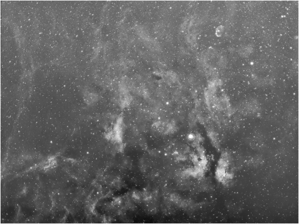 Zona del Sadr en la Constelación del Cisne. Ojós. Murcia. Agosto de 2013 Atik 314 L+. Objetivo Canon a 90 mm de focal. Filtro Halfa. 6nm. Leandro Banegas Gomariz. En memoria de Antonio Escalona, miembro de la Asociación Rusadir de Astronomía.