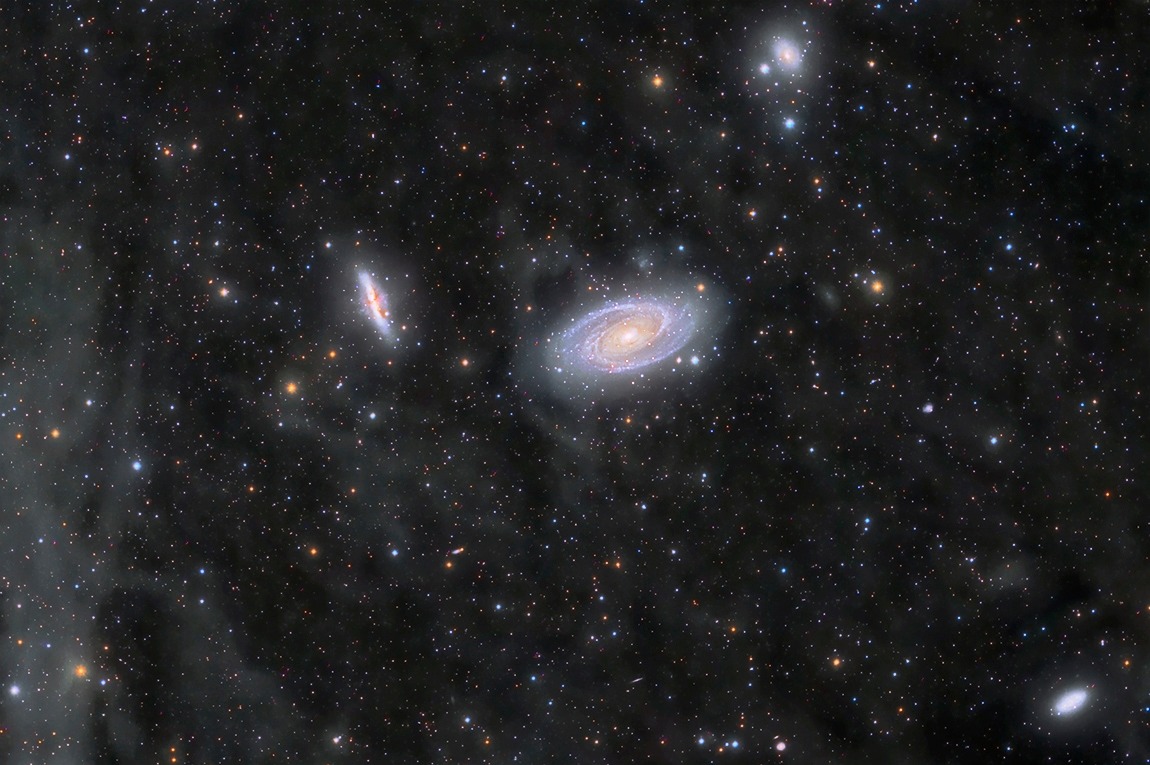 El Grupo M81 es otro grupo famoso de galaxias principalmente porque contiene al famoso par de galaxias M81/M82, decubiertas en 1784. NGC 2403 es también otra galaxia espiralada prominente ubicada en el lado derecho del grupo. M82 es un ejemplo de una galaxia de "Brote Estelar" ( o en inglés "starburst" ) - esto quiere decir que ocurren muchas formaciones de estrellas en su interior.