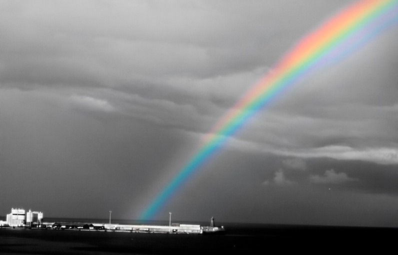 Un arcoíris, arco iris o iris es un fenómeno óptico y meteorológico que consiste en la descomposición de la luz solar en el espectro visible continuo en el cielo, lo cual se produce por refracción cuando los rayos del sol atraviesan pequeñas gotas de agua contenidas en la atmósfera terrestre. Es un arco multicolor con el rojo hacia la parte exterior y el violeta hacia el interior.